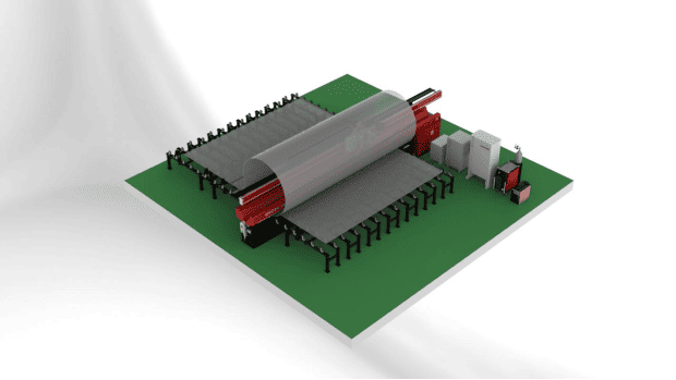 • Once the welding is complete, the clamps release the plates for unloading.